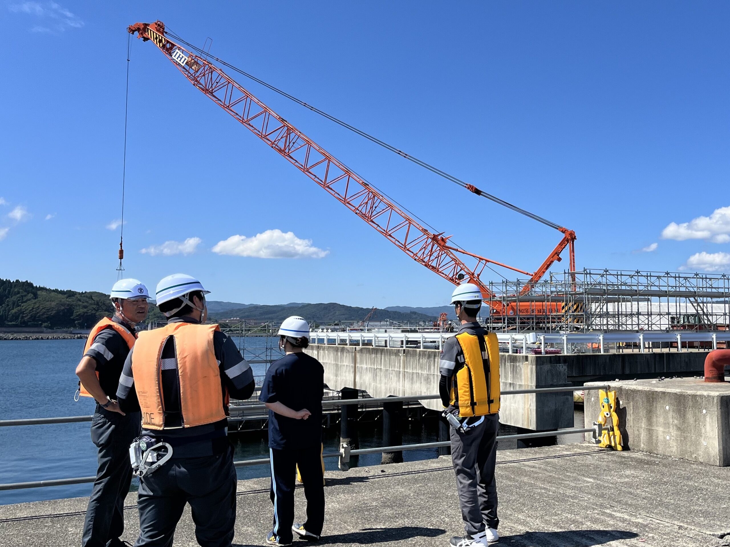人事ブログ 第2回 応募前職場見学を実施いたしました! 2024年9月11日 2024年9月11日 令和6年9月5日より高卒の就職活動が解禁になりました! それに先立ち、9月4日に久慈東高校の学生1名が当社の職場見学に訪れました。 今回の見学では、建築工事現場、港湾工事現場、土木現場、重機機械の4種類の現場や事務所を 見学していただきました。 普段の生活では重機などを間近で見る機会は少ないため、とても貴重な経験となったのではないかと思います。 この経験から、建設業や当社の魅力に気づいてもらえていたら幸いです。